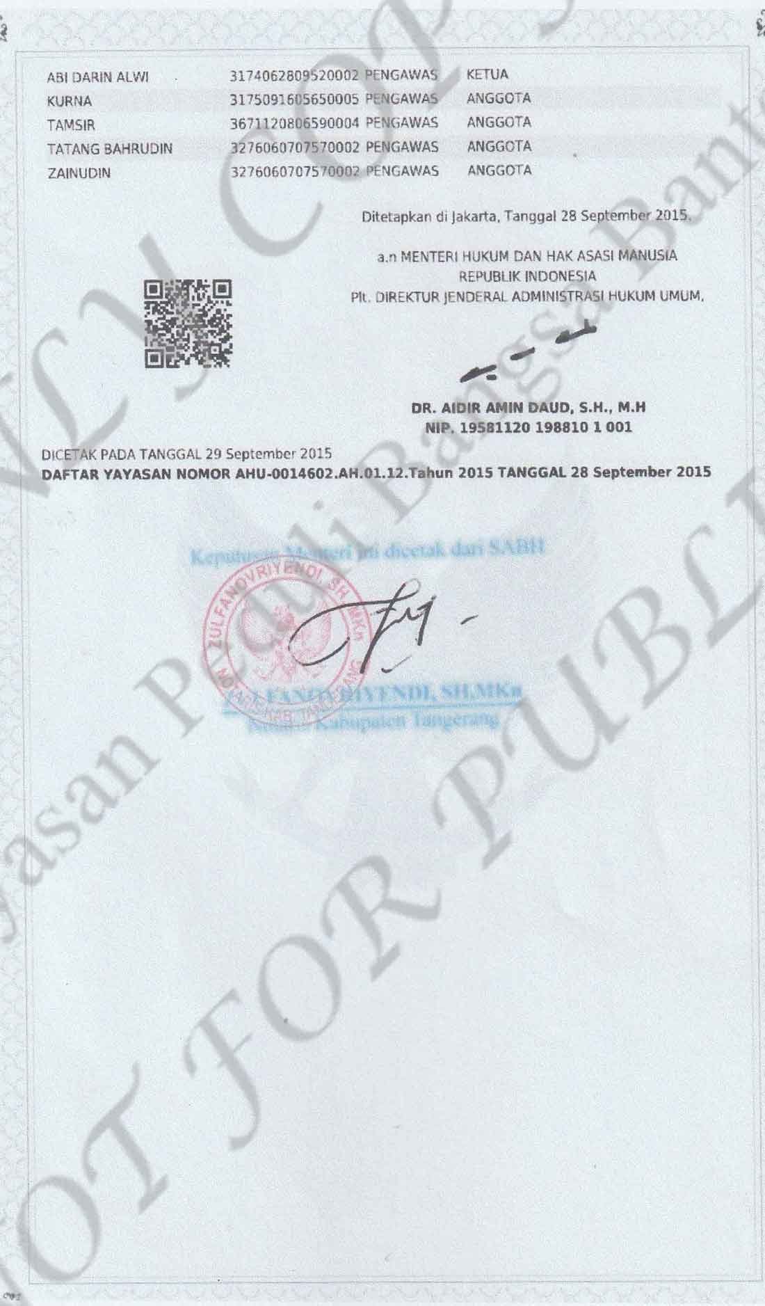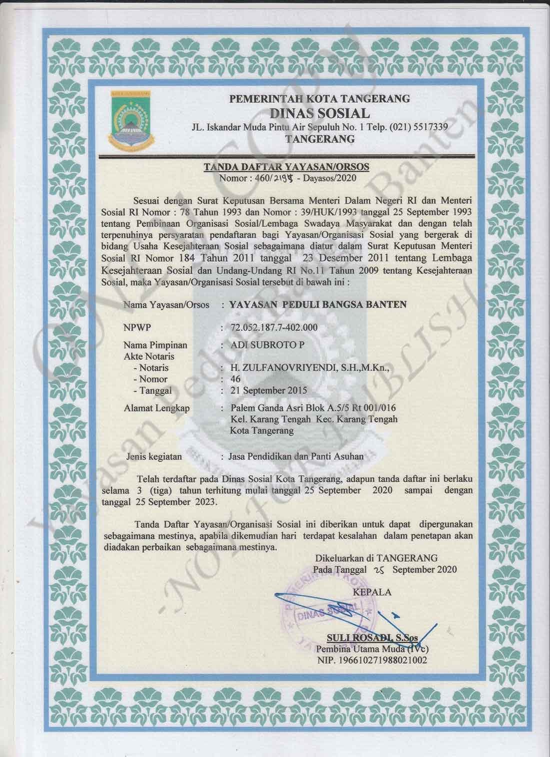 Surat Tanda Daftar Yayasan (Dinas Sosial)
